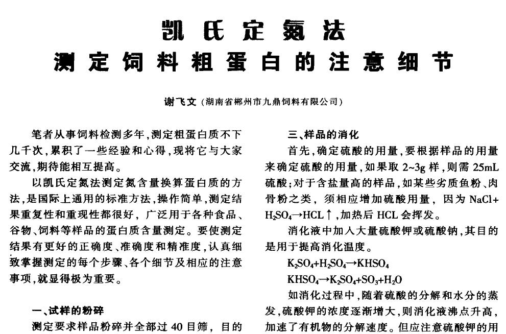 凱氏定氮法測(cè)定飼料粗蛋白的注意細(xì)節(jié) |