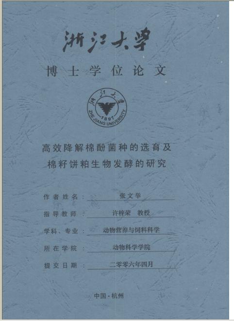 下載地址: 博士論文:高效降解棉酚菌種的選育及棉籽餅粕生物發(fā)酵的研究