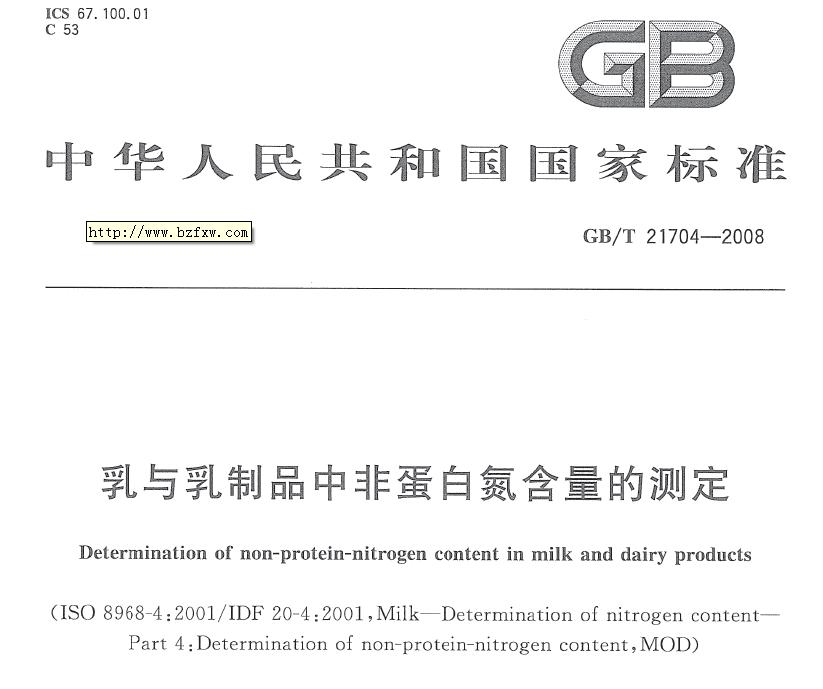 704-2008+乳與乳制品中非蛋白氮含量的測定 |