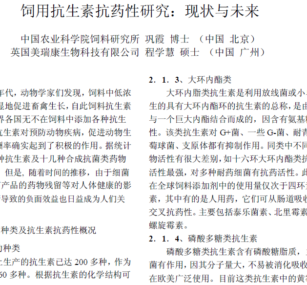 飼用抗生素抗藥性研究:現(xiàn)狀與未來(lái) |