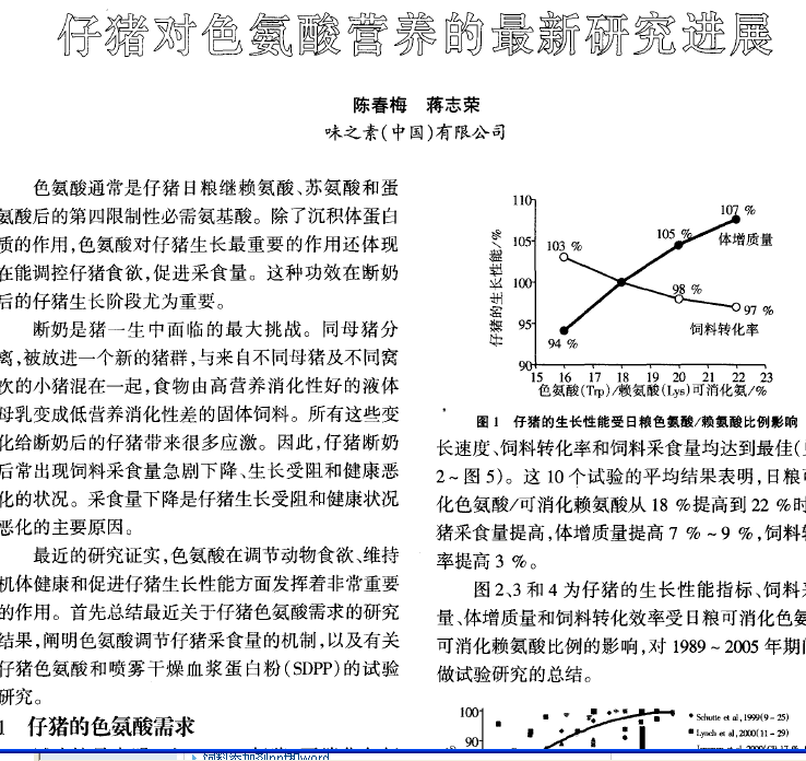 仔豬對色氨酸營養(yǎng)的最新研究進(jìn)展 |
