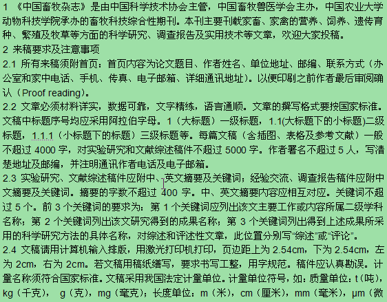 動(dòng)物營養(yǎng)幾種核心期刊的征稿格式 |