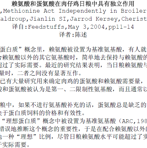 賴氨酸和蛋氨酸在肉仔雞日糧中具有獨立作用 |