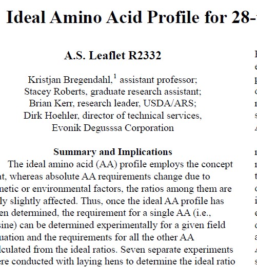 Ideal Amino Acid Profile for 28-to-34-Week-Old Laying Hens