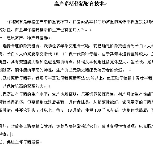 高產(chǎn)多活仔豬繁育技術(shù) |
