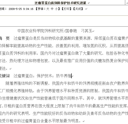 過瘤胃蛋白質(zhì)飼料保護技術(shù)研究進展 |