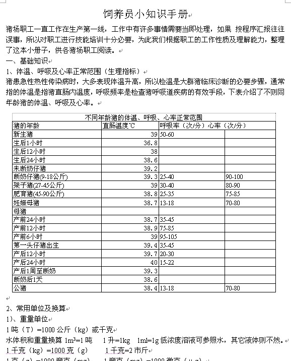豬場(chǎng)飼養(yǎng)員手冊(cè) |