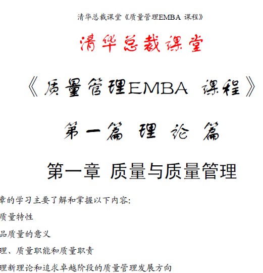 清華總裁課堂《質(zhì)量管理EMBA課程》 |