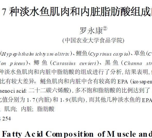 7種淡水魚肌肉和內臟脂肪酸組成的分析 |