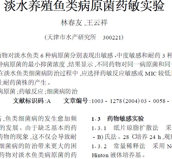 淡水養(yǎng)殖魚類病原菌藥敏實驗 |