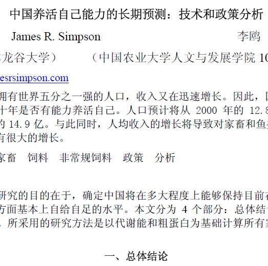 經(jīng)濟(jì)研究-中國養(yǎng)活自己能力的長期預(yù)測:技術(shù)和政策分析 |