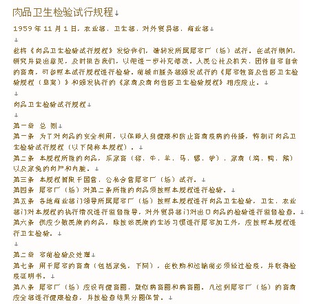 肉品衛(wèi)生檢驗試行規(guī)程. |