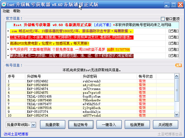 nod32升級(jí)帳號(hào)獲取器各版通用正式版 |