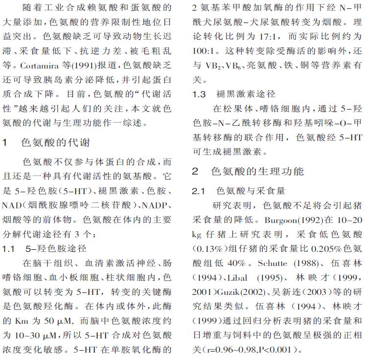 L-色氨酸營養(yǎng)研究進展 |