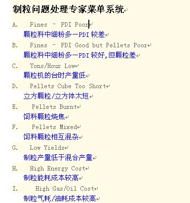 制粒問(wèn)題處理專家菜單系統(tǒng) |