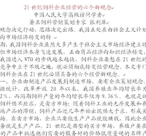 21世紀(jì)飼料企業(yè)經(jīng)營(yíng)的六個(gè)新觀念 |