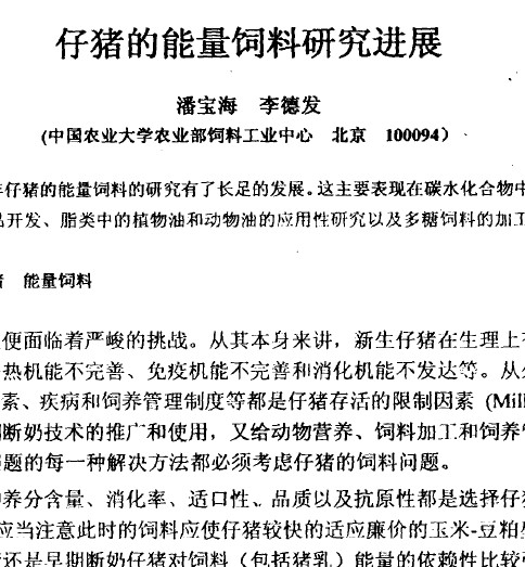 仔豬的能量飼料研究進(jìn)展 |