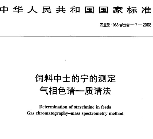 農(nóng)業(yè)部1068號(hào)公告-7-2008 飼料中士的寧的測(cè)定 氣相色譜-質(zhì)譜法 |