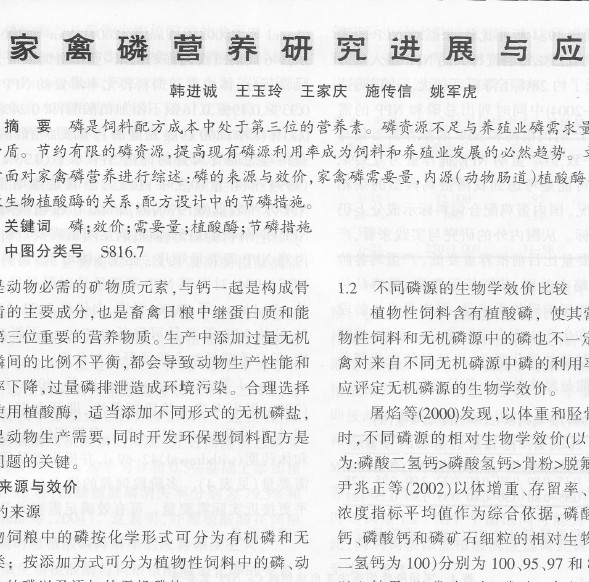 家禽磷營養(yǎng)研究進(jìn)展與應(yīng)用 |