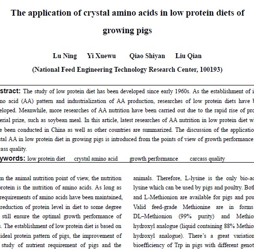 The application of crystal amino acids in low prot |