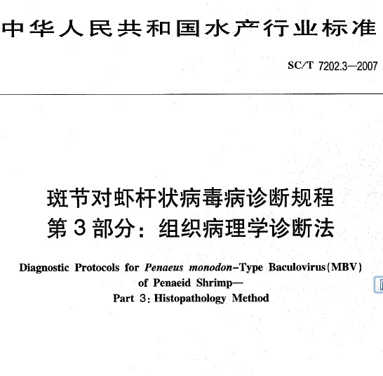 SCT 7202.3-2007 斑節(jié)對蝦桿狀病毒診斷規(guī)程 第3部分 組織病理學診斷法 |