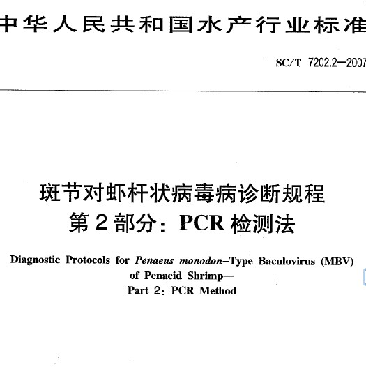 SCT 7202.2-2007 斑節(jié)對蝦桿狀病毒診斷規(guī)程 第2部分 PCR檢測法 |