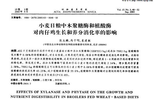 小麥日糧中木聚糖酶和植酸酶對(duì)肉仔雞生長(zhǎng)和養(yǎng)分消化率的影響.pdf |