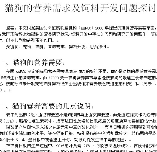 貓狗的營(yíng)養(yǎng)需求及飼料開發(fā)問(wèn)題探討 |