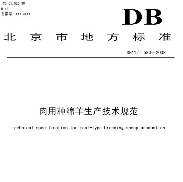 DB11T 580-2008 肉用種綿羊生產(chǎn)技術(shù)規(guī)范 |