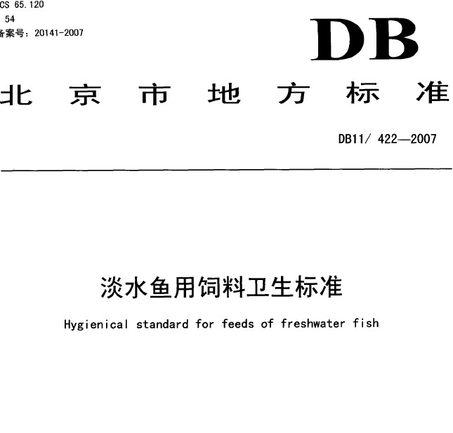 DB11 422-2007 淡水魚用飼料衛(wèi)生標(biāo)準(zhǔn) |
