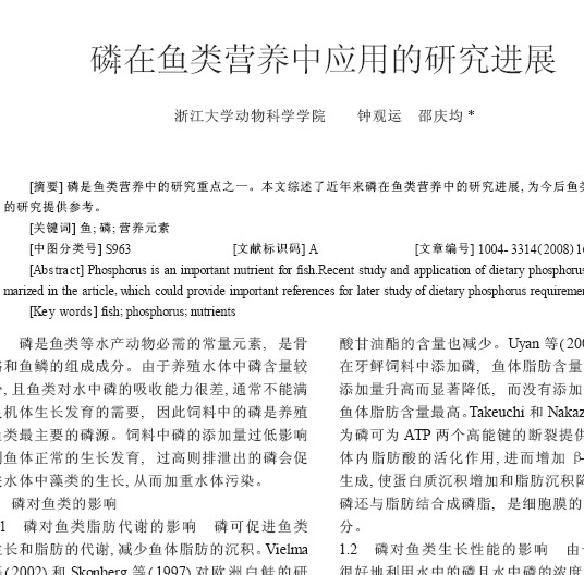 磷在魚(yú)類營(yíng)養(yǎng)中應(yīng)用的研究進(jìn)展[1] |