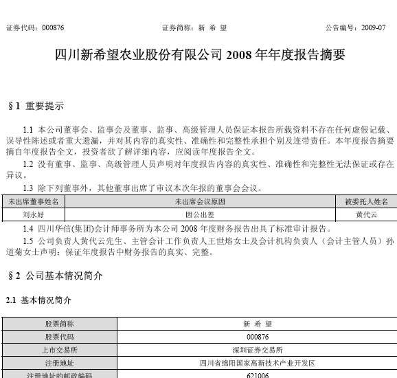 四川新希望農(nóng)業(yè)股份有限公司2008 年年度報(bào)告 |