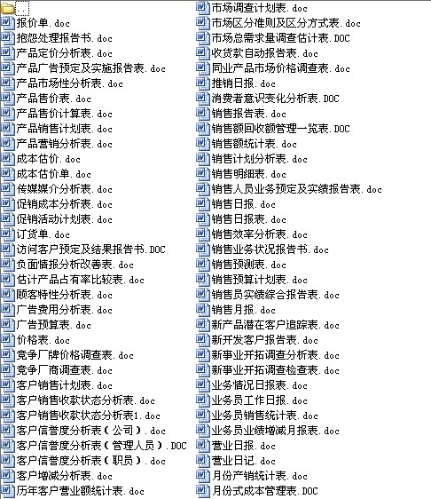 銷售部全套表格匯總(76個) |