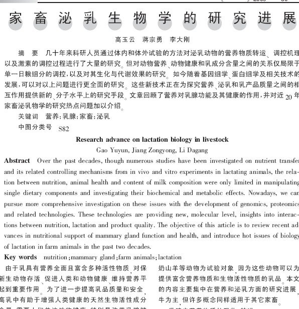 家畜泌乳生物學(xué)的研究進展 |