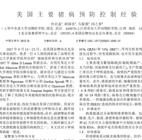 美國主要豬病預防控制經(jīng)驗 |