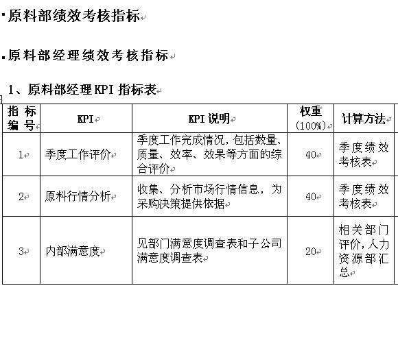 通威集團(tuán)原料部績效考核指標(biāo) |