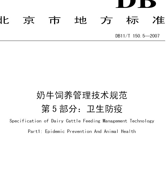 DB11T 150.5-2007 奶牛飼養(yǎng)管理技術(shù)規(guī)范 第5部分:衛(wèi)生防疫 |