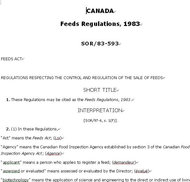 加拿大飼料法規(guī)Feeds Regulations,1983 SOR83-593 |