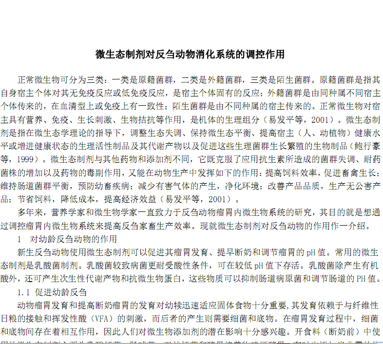 | 微生態(tài)制劑對反芻動物消化系統(tǒng)的調(diào)控作用 |