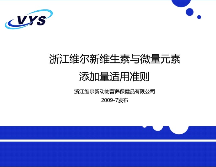 維爾新維生素與微量元素添加量適用準(zhǔn)則 |