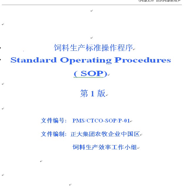 正大集團(tuán)飼料生產(chǎn)標(biāo)準(zhǔn)操作程序 |